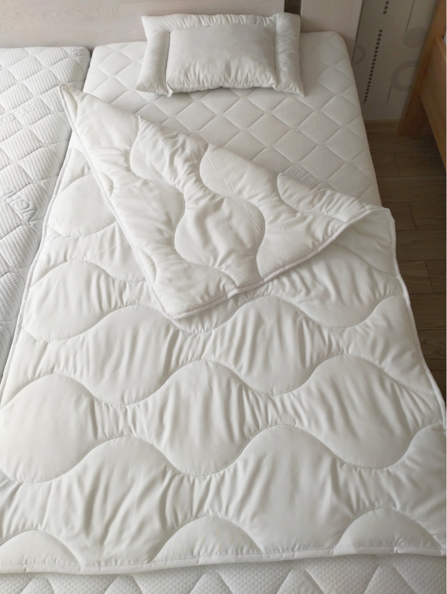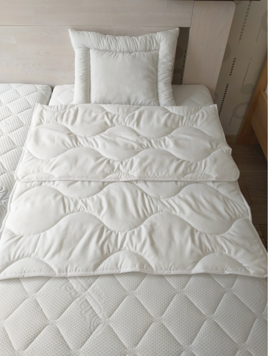 Kvalitný detský set paplón a vankúš, pre ten najlepší detský spánok. Materiály sú citlivé k jemnej detskej pokožke. Výplň tvorí 100 % polyesterové vlákno, ktoré je vysoko odolné voči svetlu, poveternosti a mikroorganizmom. Tiež je odolné voči vlhkosti. Detský set mikrovlákno tak zaistí Vášmu dieťatku pohodlný spánok.