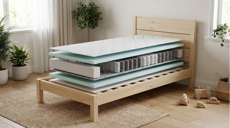 ECO MATRACE PRO DĚTI A DORAST je oboustranná taštičková matrace se dvěma úrovněmi tuhosti – střední (3) a středně tvrdou (4) , která je ideálně přizpůsobena potřebám dětí a dospívajících. Matrace je vyrobena z kvalitní PUR pěny o hustotě 35 kg/m³ , která zajišťuje pohodlí, správnou podporu a zdravý vývoj páteře.