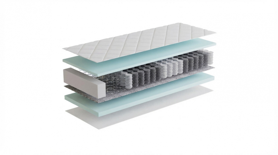 Použitý materiál PUR pěna 35 kg/m3, taštičková pružina 250 ks/m2