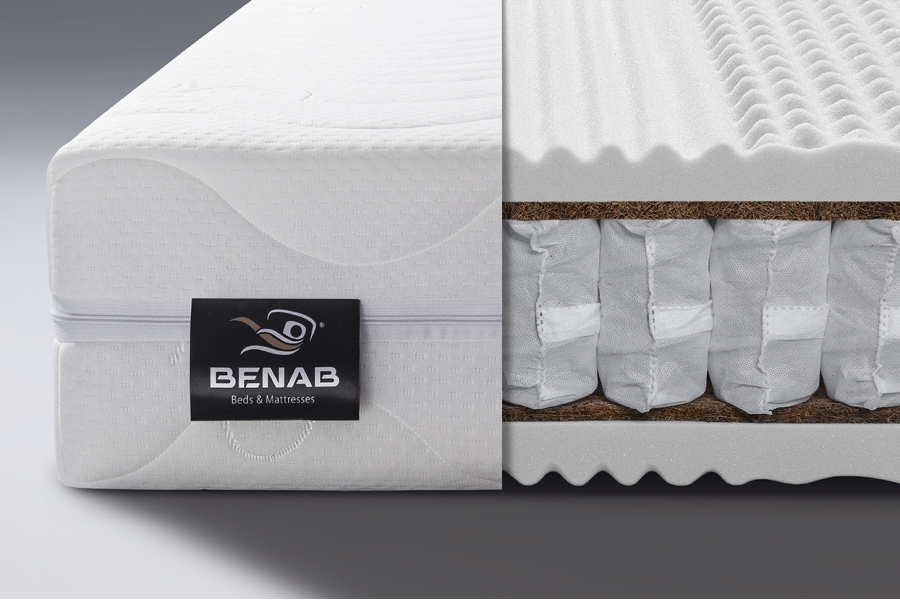 Matrac Fyzio Coco Plus je vysoký 27 cm a predstavuje kombináciu komfortu a pevnej opory vďaka kvalitnému taštičkovému jadru. Jadro matraca tvorí 7-zónová taštičková pružina, ktorá zabezpečuje anatomickú podporu a presné prispôsobenie sa telu, čím pomáha udržiavať správnu polohu chrbtice počas spánku.