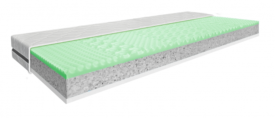 Použitý materiál PUR 7 zón profil 35 kg/m3, POE/RE pena 70 kg/m3, PUR 35 kg/m3