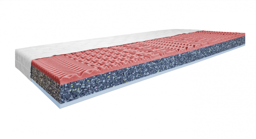 POE/RE PENA * Material * RE pěna je recyklovaná drcená polyuretanová pěna a vyrábí se spojováním různých materiálů pod silným tlakem. RE pěna dodává matrací vyšší tuhost a tedy i nosnost.