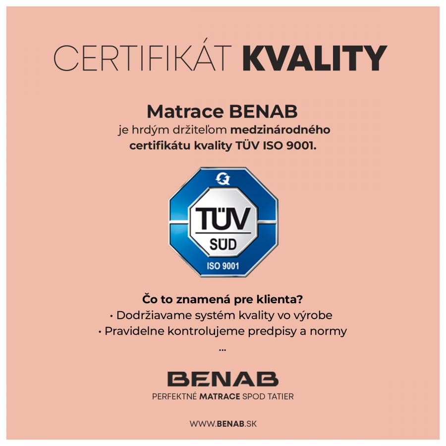 Použitý materiál VISCO pena 55 kg/m³ / PUR pena so 7-zónovým profilom 35 kg/m³ a PUR jadro 35 kg/m³.