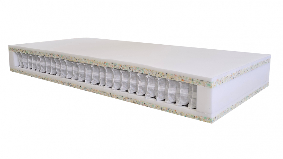 Použitý materiál PUR pěna 35 kg/m3, POE 70 kg/m3 taštičková pružina 250 ks/m2
