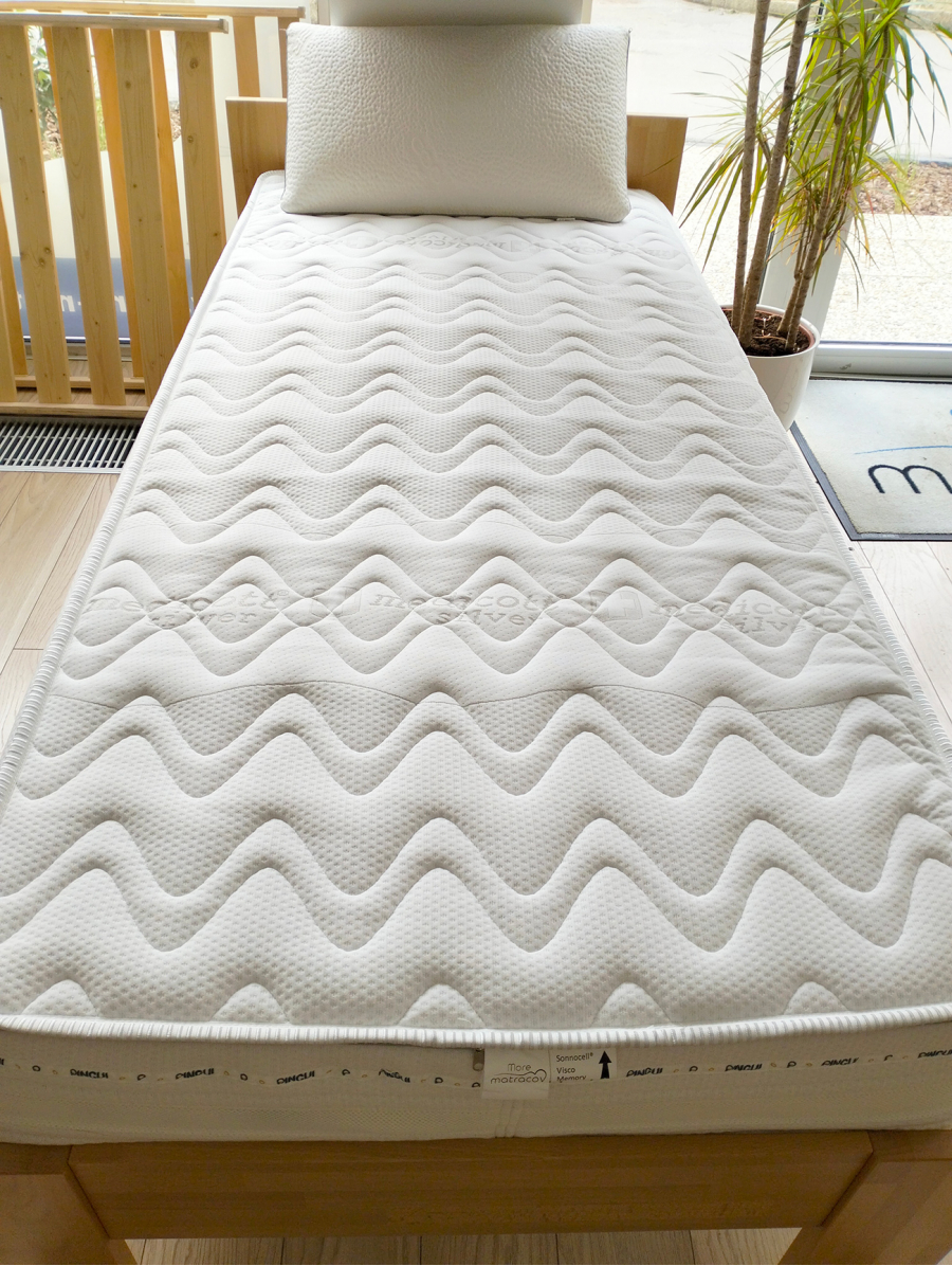 Jadro matraca tvorí 18 cm prírodný latex s hustotou 65 kg/m³, ktorý poskytuje výnimočnú pružnosť a oporu. Z jednej strany je matrac doplnený o 4 cm vrstvu pamäťovej peny Sonnocell Visco Memory, ktorá sa dokonale prispôsobí tvaru vášho tela. Druhá strana ponúka 5 cm HR studenej peny pre pevnú, no stále pohodlnú oporu.