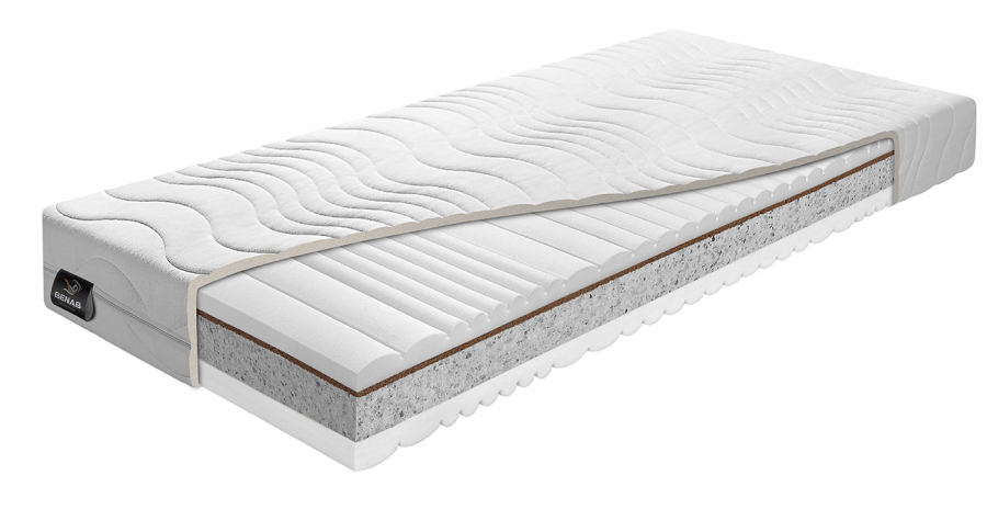 Použitý materiál PUR 7 zón profil 30 kg/m3, POE/RE pena 70 kg/m3, kokosová vrstva 1300 gr/m2