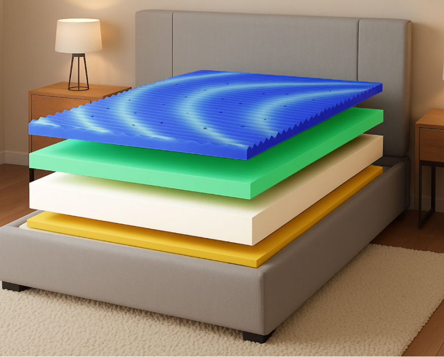 Použitý materiál PUR pěna 35 kg/m3, HR pěna 40 kg/m3, HYBRID 55 kg/m3