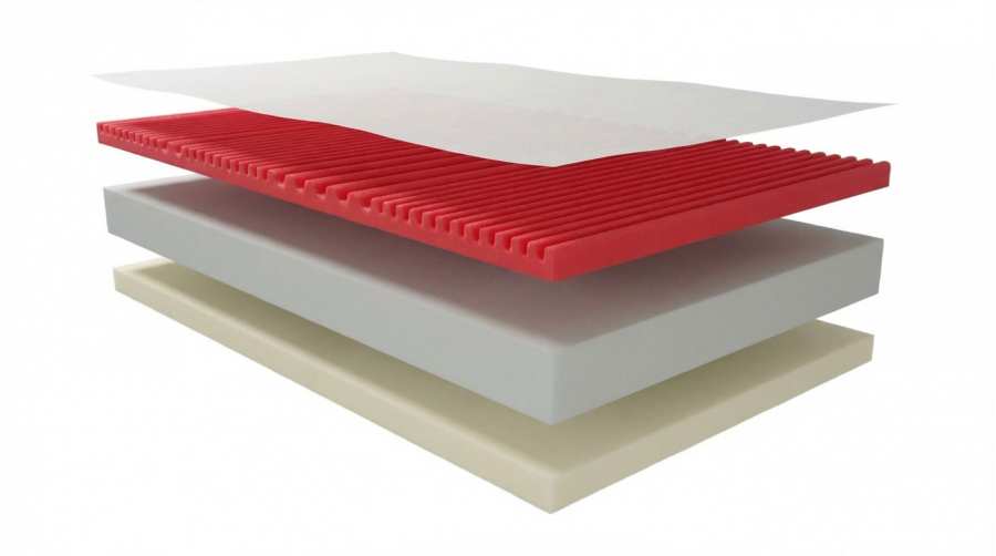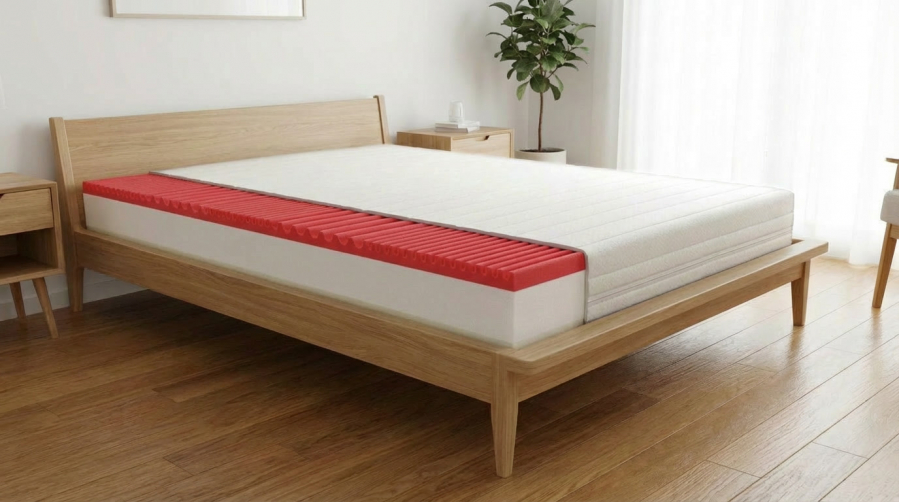 Použitý materiál VISCO pěna 55 kg/m³ / PUR pěna se 7-zónovým profilem 35 kg/m³ a PUR jádro 35 kg/m³.
