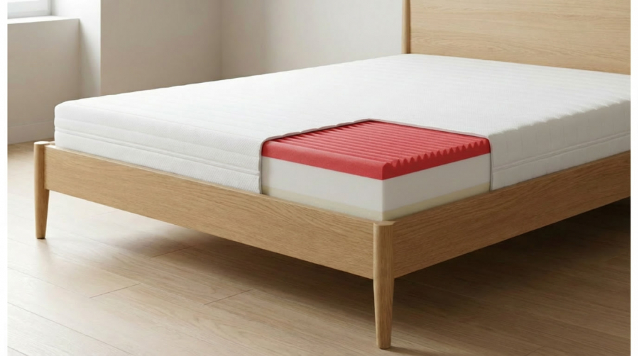 Použitý materiál VISCO pěna 55 kg/m³ / PUR pěna se 7-zónovým profilem 35 kg/m³ a PUR jádro 35 kg/m³.