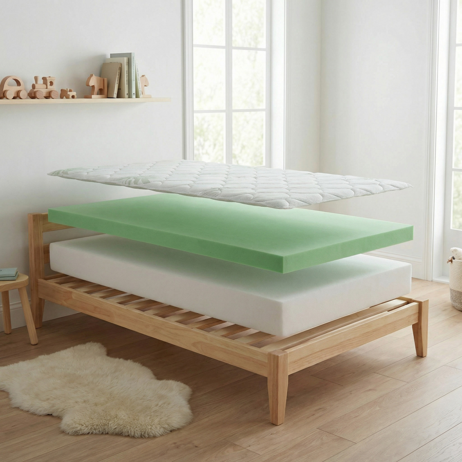Jádro matrace tvoří kombinace PUR pěny (28 kg/m³) a HR studené pěny (38 kg/m³) , které spolu vytvářejí pevný, ale zároveň přizpůsobivý podklad . PUR pěna zaručuje stabilitu, zatímco HR pěna se díky své pružnosti dokonale přizpůsobí tvaru těla dítěte a zajišťuje přirozené držení páteře . Pěna je zároveň vzdušná , což pomáhá předcházet přehřívání během spánku a zvyšuje hygieničnost matrace. Tato matrace je navržena tak, aby splňovala nároky dětí v období vývoje a aktivního růstu.