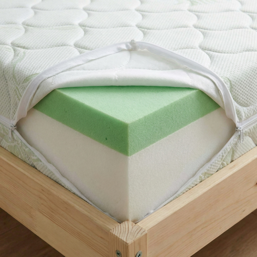 ALOE VERA * Potah * Složení: 85% polyester; 15% viskóza, obohacený o výtažky z aloe vera, potah prošitý s klimatizační výplní, PES vláknem 250 gr / m2