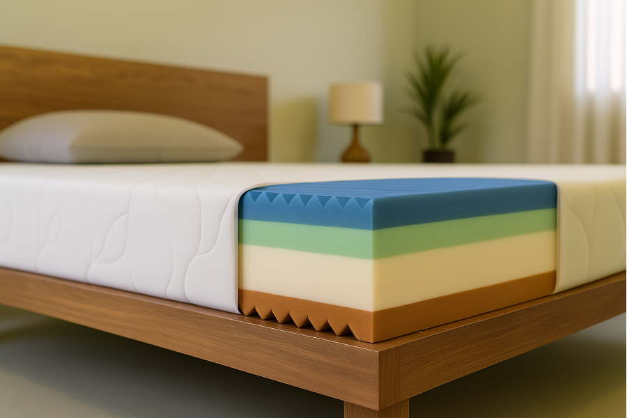 Použitý materiál PUR pena 30 kg/m3, HR pena 38 kg/m3, HYBRID 50 kg/m3