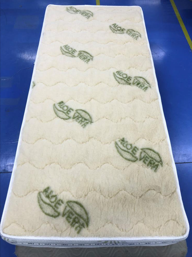 Potah 1: látka Aloe Vera prošívaná 2 cm vrstvou paměťové pěny Sonnocell® Visco Memory s Termo vláknem 250g/m2 a TNT textilií 15g/m2 a etiketou s pečujícími symboly